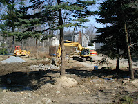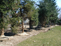 The large evergreens that once divided the upper and lower properties were being moved and staged at another spot in the yard for future use.